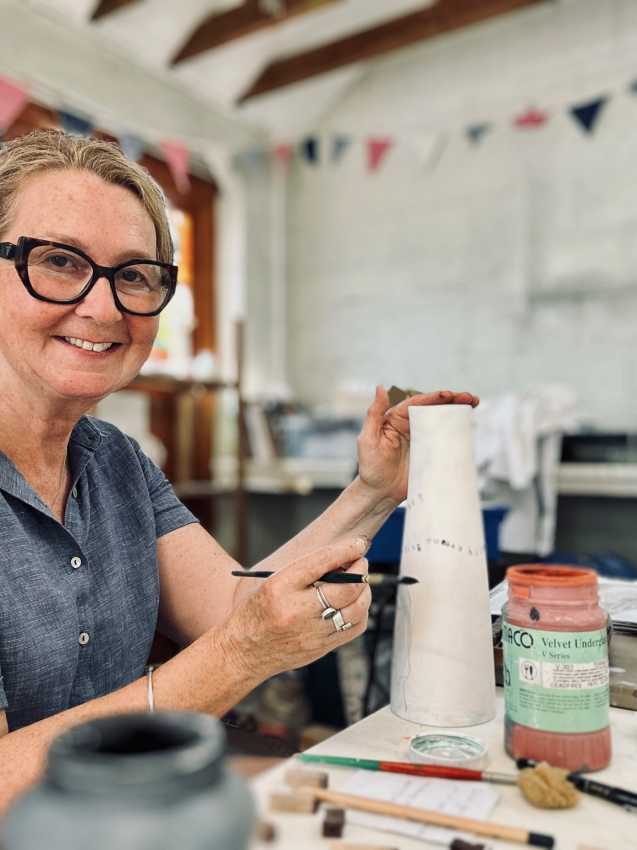 Jane spends the cold winter months gathering ideas, sketching and designing. She then cuts and carves the lino that is used to decorate her porcelain and cold cast bronze pieces. As warmer days arrive she is out in her shed, creating and casting with clay ...